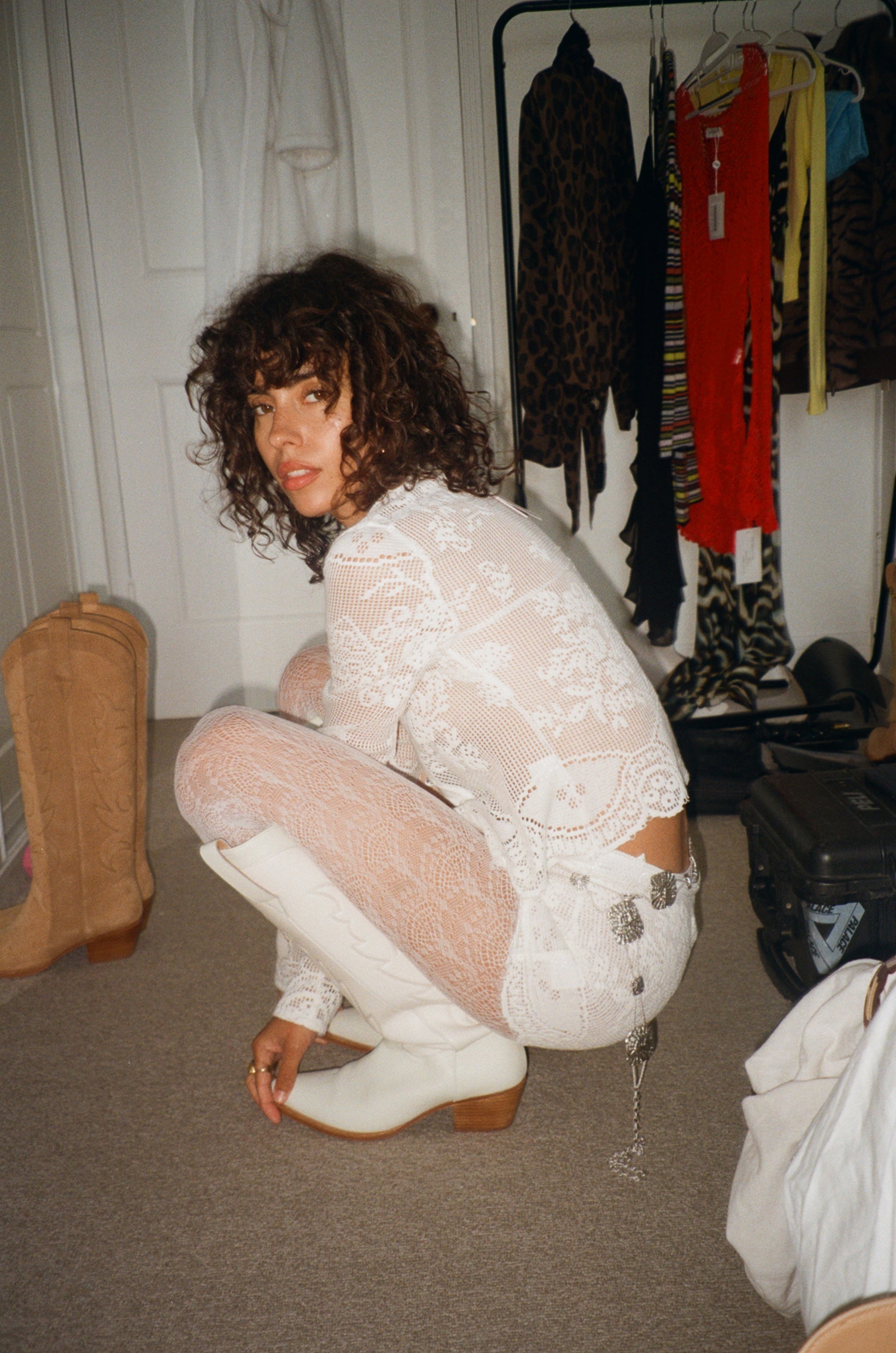 These bone cowboy boots, crafted from buttery calf nappa, are cut just below the knee with classic pull tabs, an angled heel, and a sharp pointed toe. Signature embroidered panels nod to western tradition, reimagined city-ready style. Inside, a discreet credit-card-sized pocket is stitched into the lining - because utility is part of the story too.